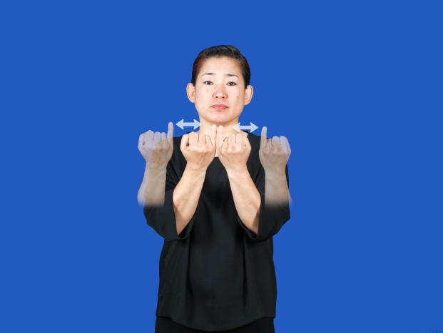 두 주먹의 4지를 펴서 등이 밖으로 향하게 세워 두 번 마주 댔다 뗀다.