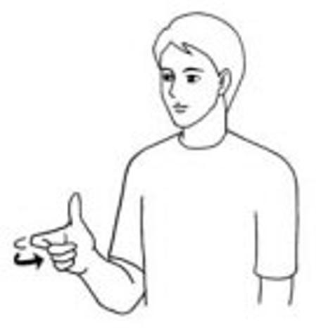 오른 주먹의 1·5지를 펴서 1지가 밖으로 향하게 모로 세우고 1지를 구부린다.
