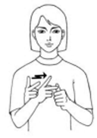 왼 주먹의 5지를 펴서 바닥이 밖으로 향하게 세우고, 그 바닥에 오른 주먹의 1·2지를 펴서 2지를 두 번 댄다.
